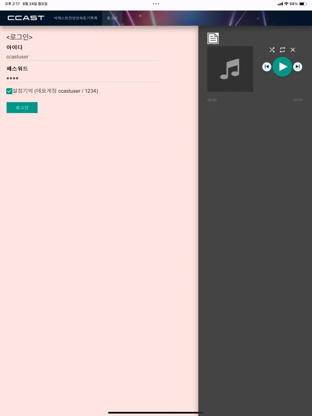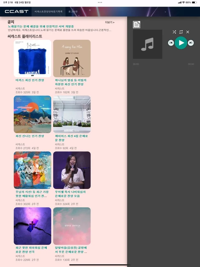 크리스천 인터넷 음악방송 씨캐스트에서 개발한 찬양플레이리스트 플레이어입니다.