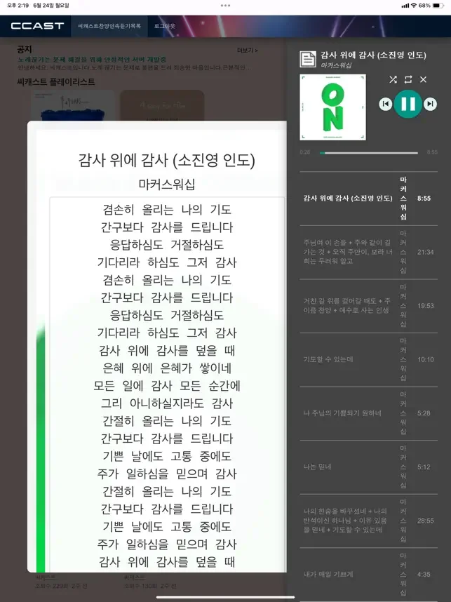 씨캐스트 - CCM음악방송국 어플을 만들어 주신 개발자님 감사합니다~