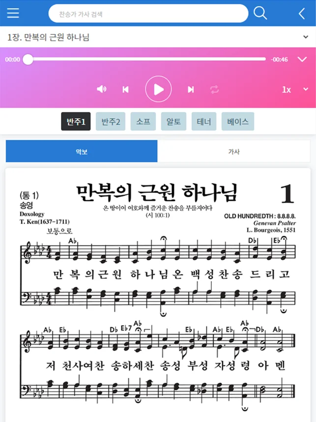 그리고 찬송가 전곡 4성부(소프라노, 엘토, 테너,베이스) 모두