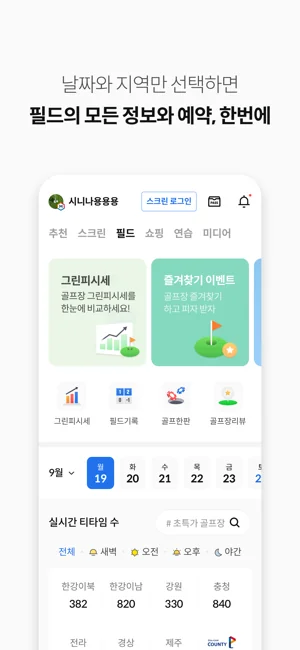 날짜와 지역만 선택하세요, 편하게 예약하고 필드 골프를 즐기실 수 있습니다.
