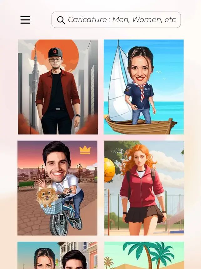 무료 AI 기반 만화 캐리커처 메이커 앱을 사용하여 사진을 만화 캐리커처로 자동 변환하세요. 이 최고의 만화 도구는 몇 초 안에 사진을 캐리커처로 바꿉니다. 이 최고의 캐리커처 메이커 사진 편집기를 사용하여 맞춤형 컬러, 흑백 또는 연필 만화 캐리커처를 만들 수 있습니다. 120 개 이상의 캐리커처 스타일 중에서 선택하여 사진을 만화 캐리커처로 변경할 수 있습니다. 나만의 생일, 커플, 프로페셔널, 재미있는 만화 캐리커처를 자동으로 만드세요. 사진 라이브러리에서 사진을 가져 와서 수백 개의 예술적 캐리커처에서 캐리커처 스타일을 선택하기 만하면이 캐리커처 메이커 사진 편집기는 사진을 재미있는 맞춤형 만화 캐리커처로 자동 변환합니다. 사진을 만화 화하고 캐리커처 아티스트가되어보세요. 나만의 캐리커처 그림을 모두와 공유하세요.