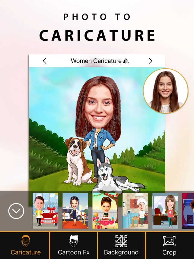 카메라 또는 갤러리에서 사진을 가져 와서 몇 초 만에 사진을 캐리커쳐로 바꿉니다. 그래서 친구가 우리의 무료 만화 캐리커쳐 메이커를 다운로드하여 친구들이 웃기는 결과를 웃게 만듭니다.